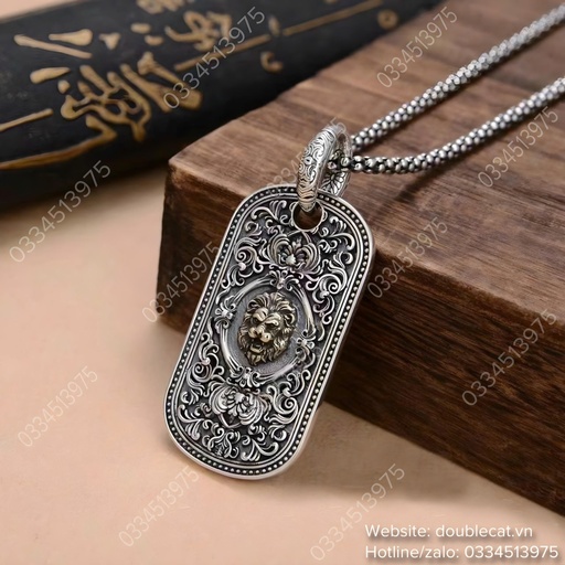 Mặt dây chuyền thẻ vua sư tử, bạc 925