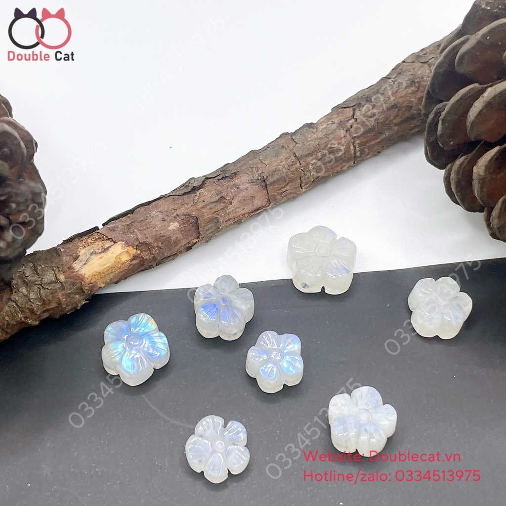 Mặt dây, charm hoa mai đá mặt trăng ( moonstone)