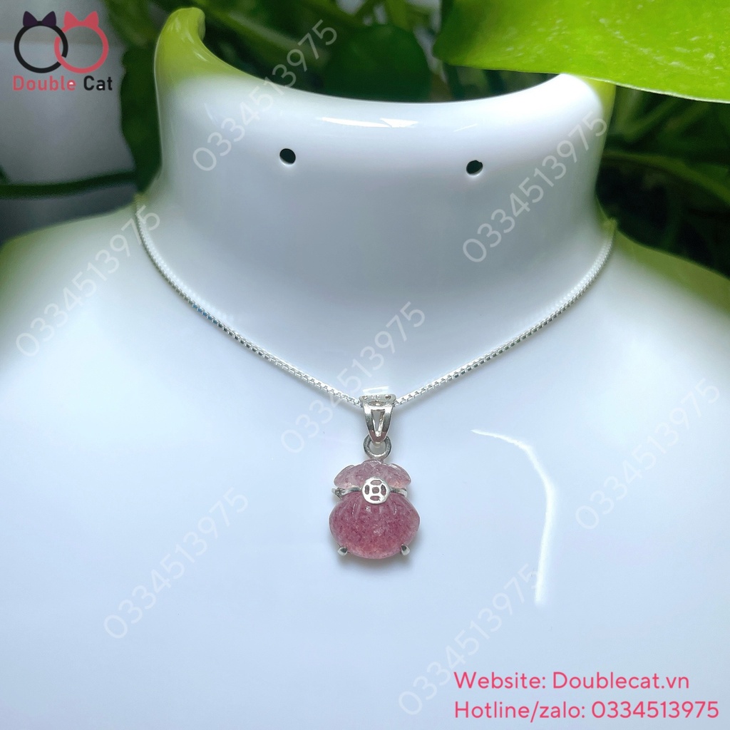 Mặt dây chuyền túi tiền thạch anh dâu tây - Mang may mắn và tài lộc cho bạn!